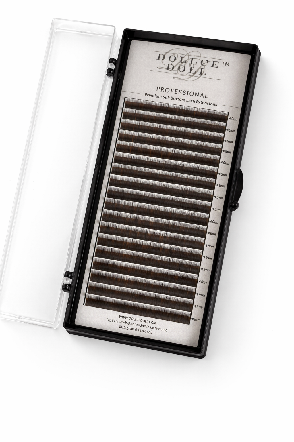 Premium Silk, Black Bottom Individual Lash Extensions in mixed trays of 5mm & 6mm.